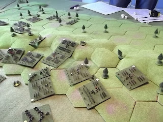 Mark had more cavalry and so moved them down his left flank (they had determined that no cavalry could enter the hills - being very steep and covered in scrub and brush).